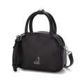 Square round tote features theft-prevention flap and smart storage
