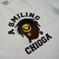 Features graphic print and chain stitching at front and back