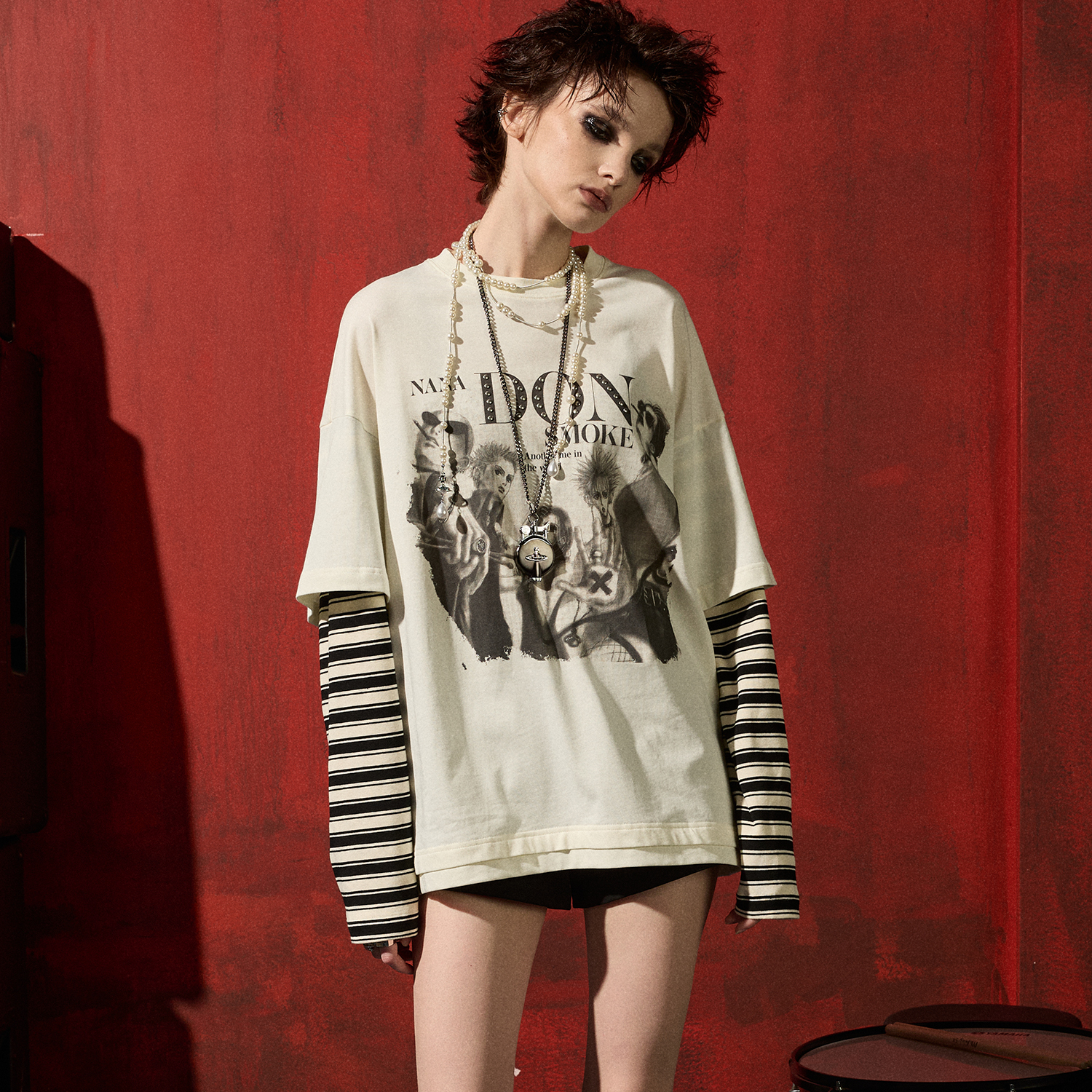 Donsmoke x NANA Black Stones 2PC LS Tee - White